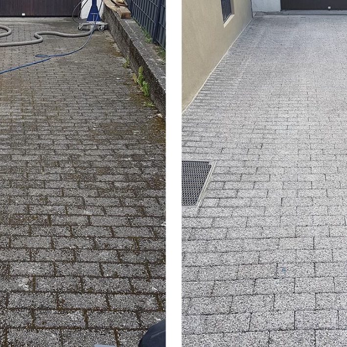 Professionelle Reinigung von Pflastersteinen für ein sauberes und gepflegtes Ergebnis.
