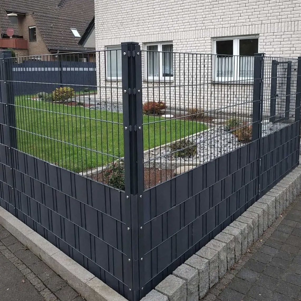 Professionelle Montage von stabilen und langlebigen Doppelstabmattenzäunen.